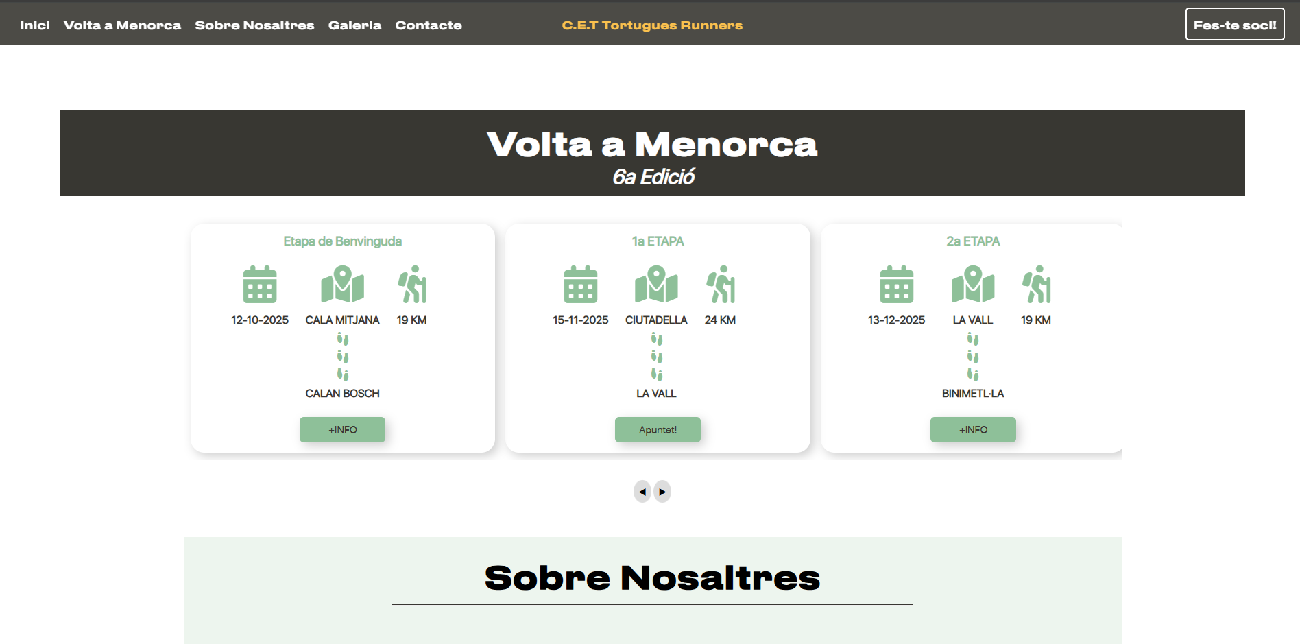 Sitio web desarrollado para el club de corredores Tortugues Runners Menorca, con el objetivo de mostrar información del club, gestionar las inscripciones de etapas y gestionar las altas de socios al club y los pagos de la pagina web. Además también incluye panel de administración para poder gestionar las actividades del club.